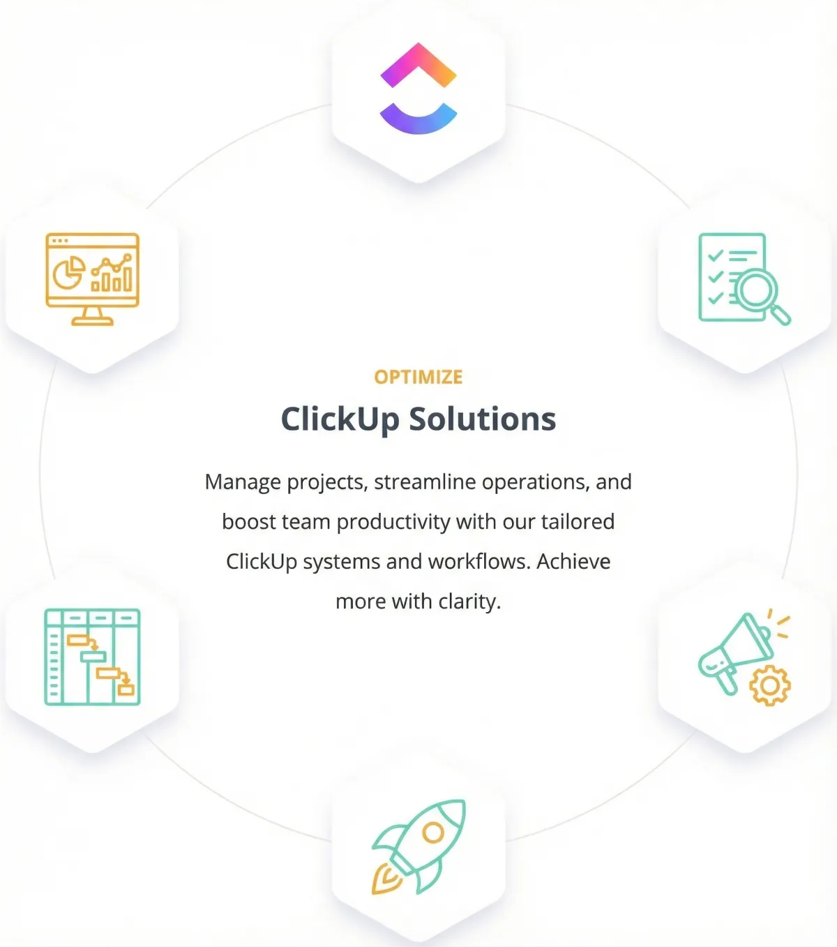 Maximize your company’s operational success with our expert ClickUp solutions. Instead of generic setups, we tailor workflows to your business logic, use deep-dive audits to find bottlenecks, and leverage cutting-edge automation to boost productivity, team clarity, and scalable growth.